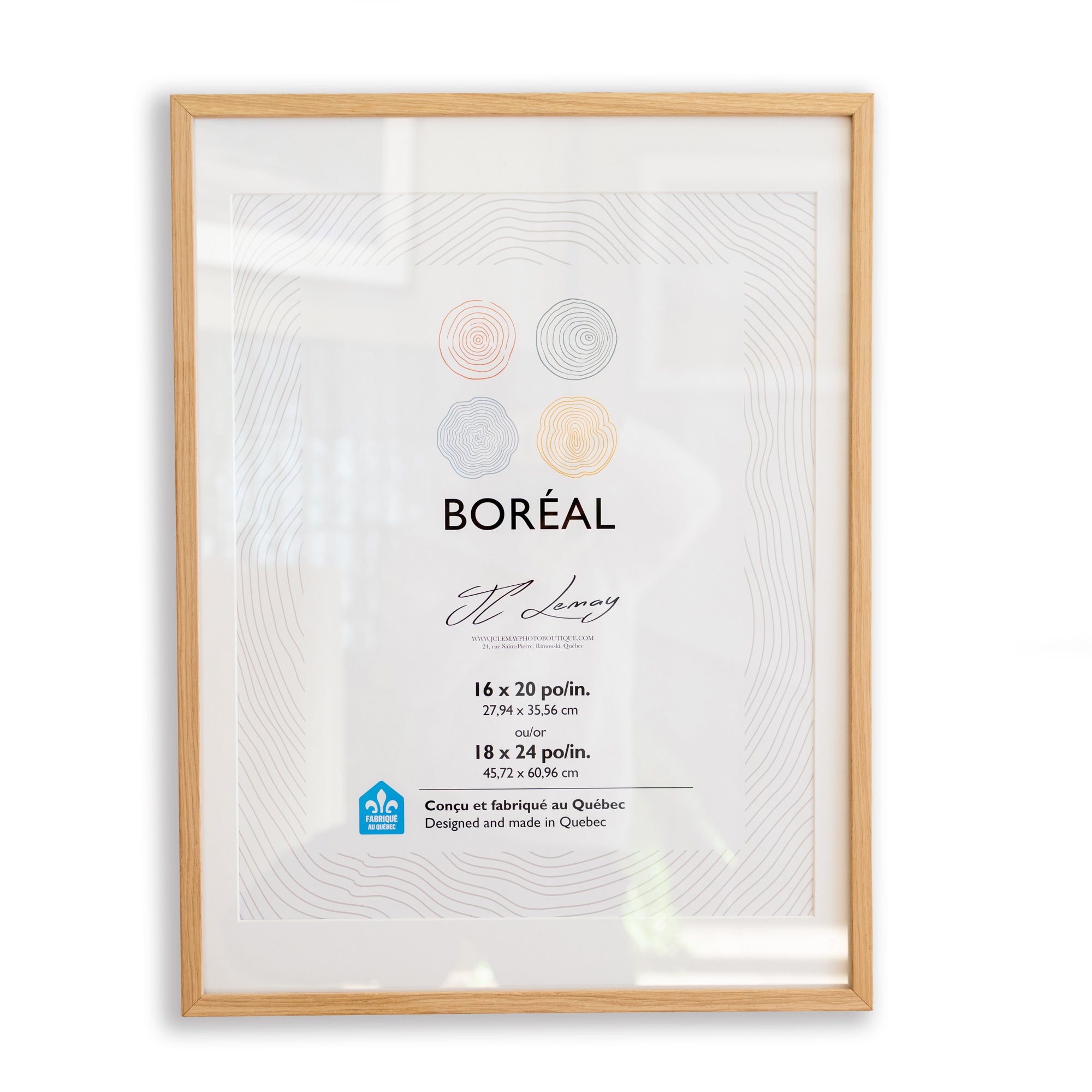 Moulding: real wood, manufactured in Quebec. Available in natural wood or dark wood.