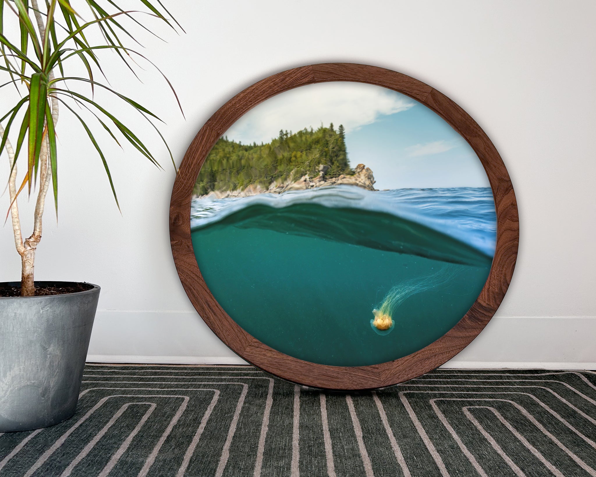 Cadre rond en bois massif (noyer) - Méduse au Cap Enragé, Le Bic